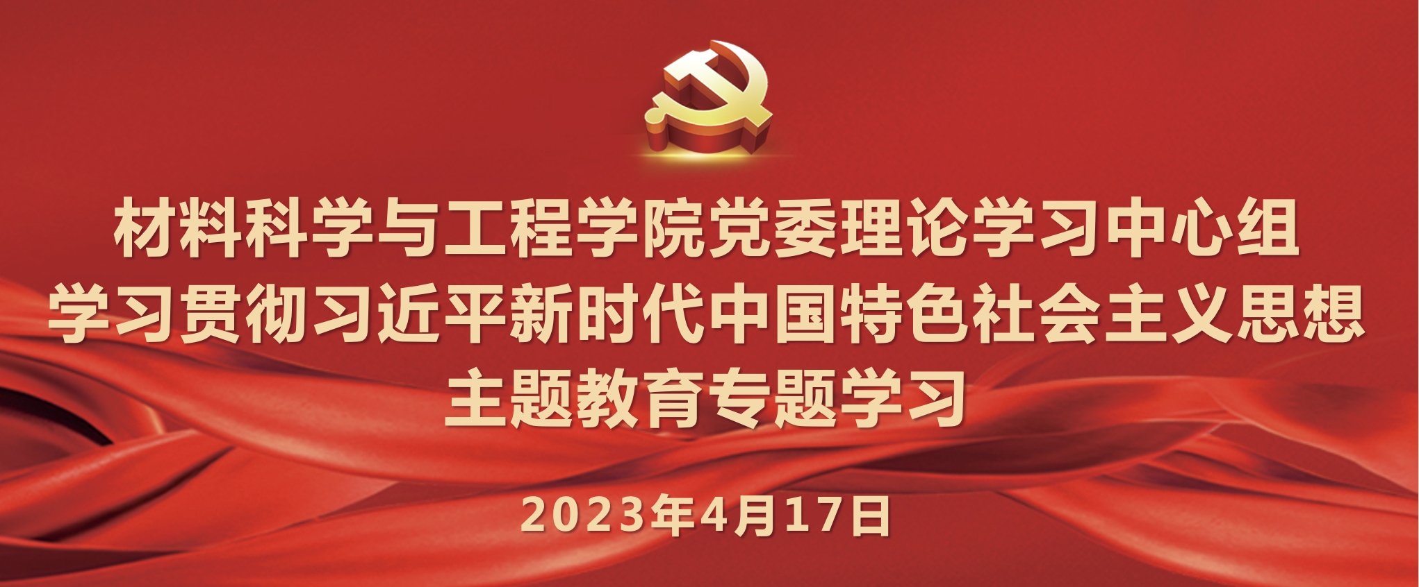2023年4月17日下午,材料科学与工程学院于四号楼201会议室召开理论学习中心组2023年第三次专题学习会议,深入学习习近平总书记在学习贯彻习近平新时代中国特色社会主义思想主题教育工作会议上的重要讲话精神、习近平总书记在学习贯彻党的二十大精神研讨班开班式上的重要讲话精神。材料学院党委书记郭洪波主持会议,理论学习中心组成员参加会议。会上,郭洪波领学习近平总书记在学习贯彻习近平新时代中国特色社会主义思想主题教...