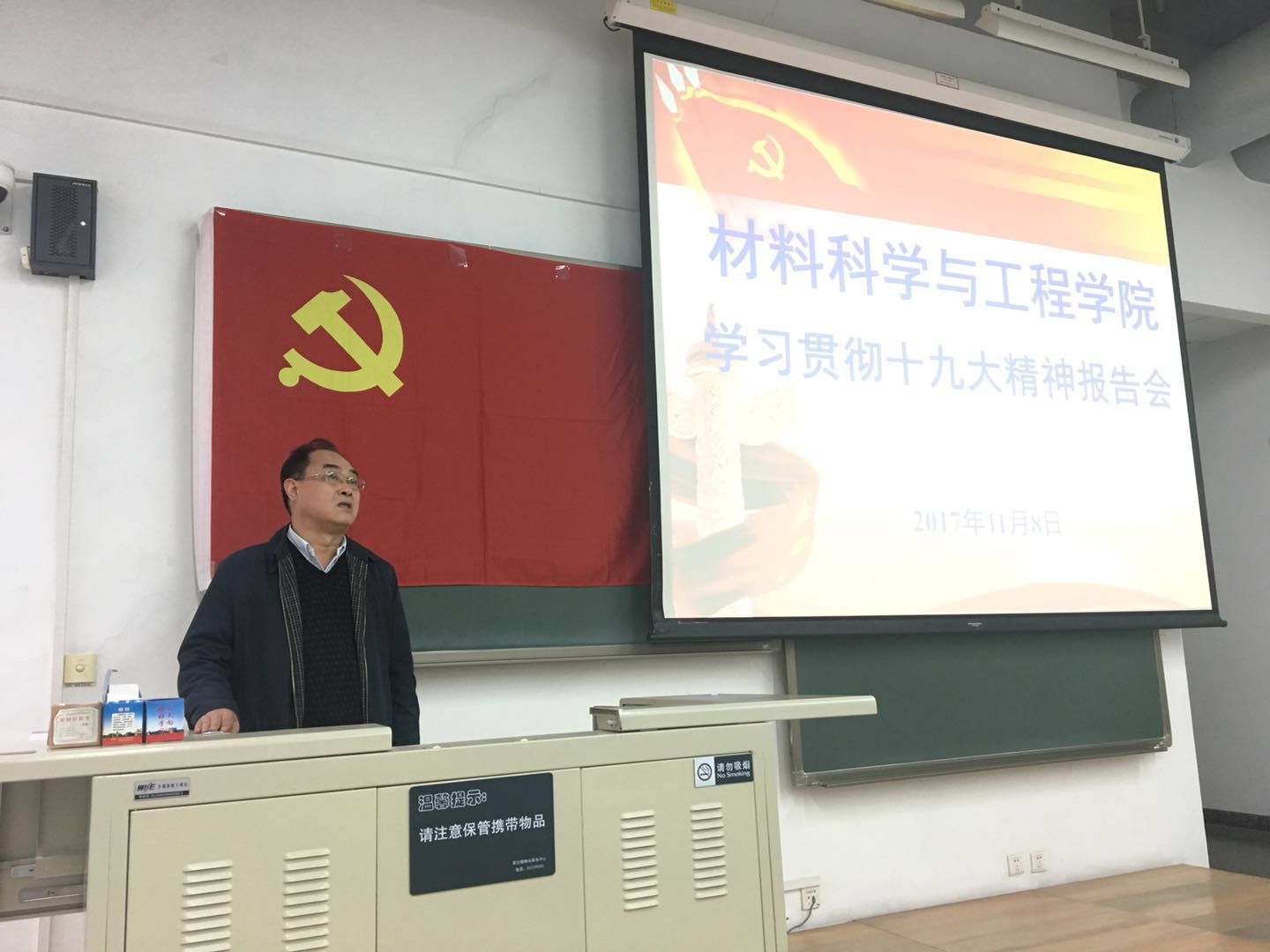 11月8日下午,材料学院召开学习贯彻党的十九大精神报告会,魏志敏副校长依据党中央的要求及学校党委的总体部署,对材料学院学习贯彻十九大精神提出了具体要求,并针对十九大报告为材料学院党员师生进行宣讲。会议由材料学院党委书记马朝利主持,材料学院的党员教师和各学生党支部书记参加了此次会议。