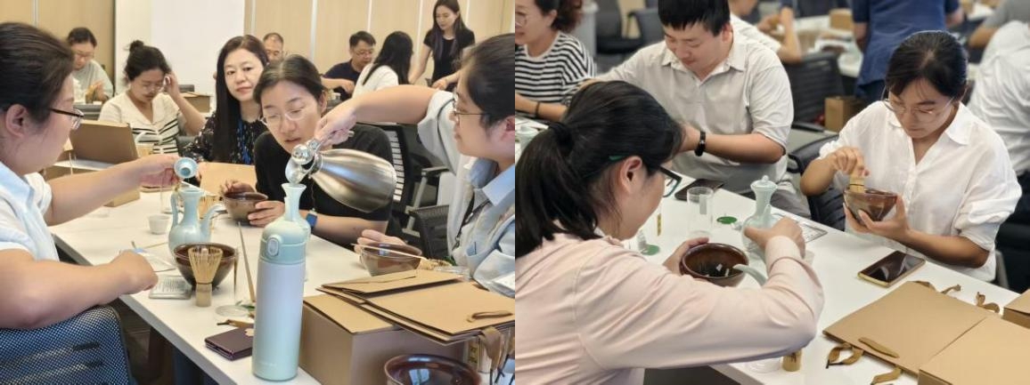 活动尾声,教职工们手捧自己亲手点制的茶汤,合影留念,脸上洋溢着满足与喜悦。此次宋代点茶主题活动不仅让教职工们领略了宋代茶文化的独特魅力,更在繁忙的工作之余找到了一份宁静与雅致,为教师节增添了一抹别样的文化色彩。