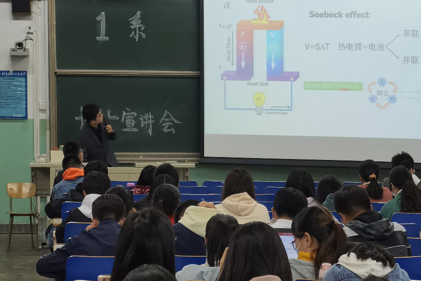 本次活动中,两位博士的讲解深入浅出,用贴近研一新生角度的方式介绍了自己的课题,拓宽了同学们的视野,提升了同学们的科学素养。通过本次活动,同学们对AIE分子和薄膜热电器件有了一定的认识,在宣讲会结束后也进行了讨论交流,收获颇丰。