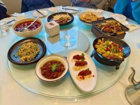 参观完实验室后,材院研会的志愿者陪同学们来到新北食堂3层餐厅享用丰盛午餐。经过一番简单的自我介绍后,同学们一边品尝美食,一边向师兄师姐请教专业选择和材料学科的问题,大家彼此交换对材料领域前沿发展的认识与体会。