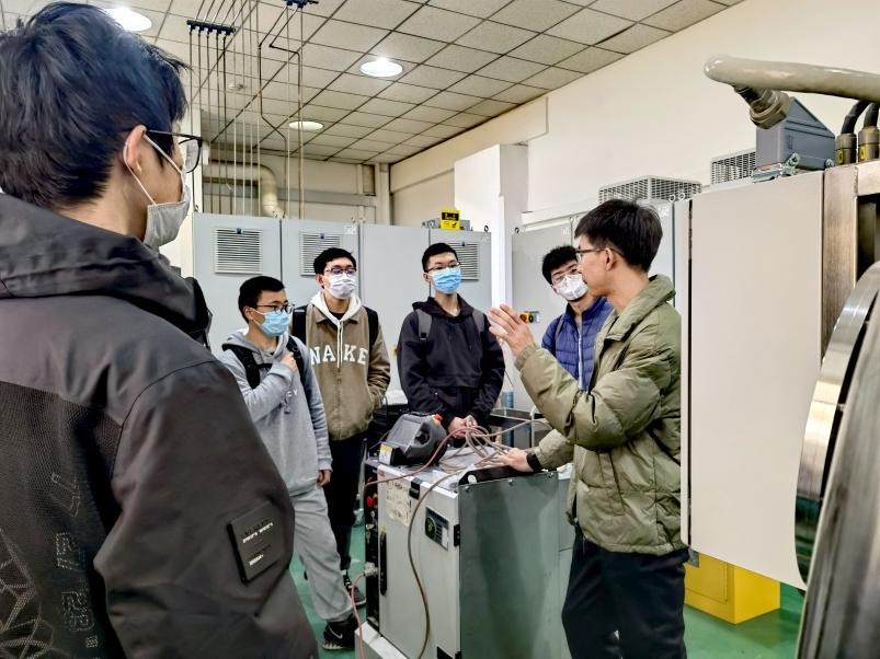 活动第一站,同学们来到郭洪波教授课题组的高温结构材料与涂层技术工信部重点实验室。课题组研究生郭谦师兄为同学们耐心介绍了热障涂层——航空发动机的“金钟罩”的成分设计与加工制备,讲述了团队突破对国外设备进口的依赖、一步步实现实验设备国产化的励志科研故事。参观过程中同学们就热障涂层的前沿技术、材料学院的研究方向和职业发展等问题与郭谦师兄展开深入交流。