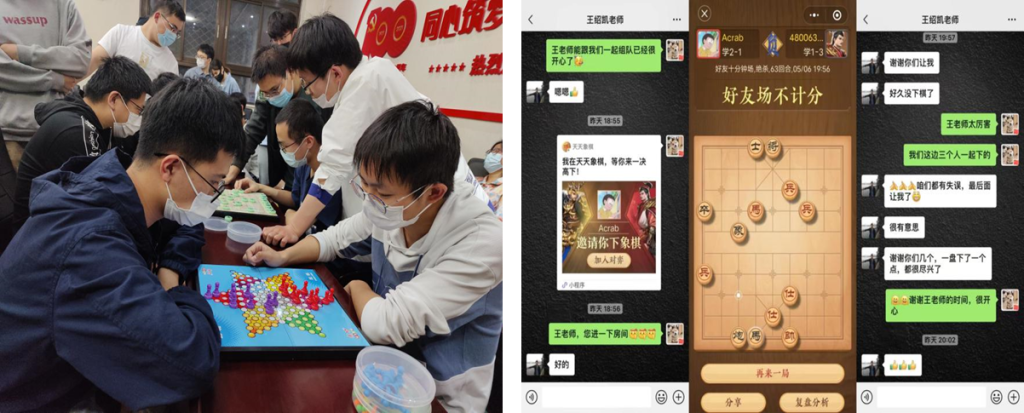 本次棋类竞赛设立了围棋、跳棋、象棋、五子棋四个项目,利用多元化的参赛形式构建教学相长、师生相宜、团队共建、和谐发展的良好导学关系,加强师生团队合作能力,进一步促进师生间的生活化交流。竞赛以课题组为单位,共18支队伍参与竞技,同学们细心兼并耐心,你攻我守,你来我往,棋局角逐激烈,精彩无比。
