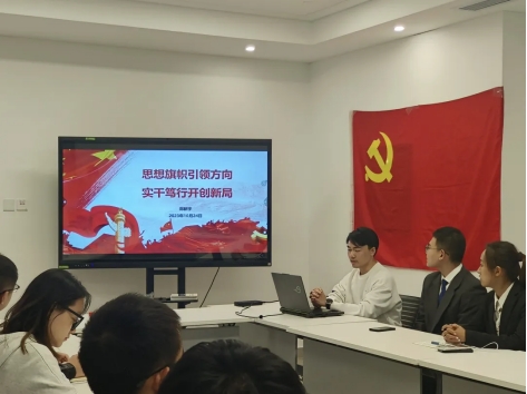 在铿锵的《国际歌》后,郑新宇同志以“思想旗帜引领方向,实干笃行开创新局”为题,带领全体同志学习全国宣传思想文化工作会议精神。习近平总书记在重要指示中指出,宣传思想文化工作事关党的前途命运,事关国家长治久安,事关民族凝聚力和向心力,是一项极端重要的工作。习近平总书记在重要指示中强调,要坚定文化自信,秉持开放包容,坚持守正创新,为全面建设社会主义现代化国家、全面推进中华民族伟大复兴提供坚强思想保证、强大精神力量、有利文化条件。