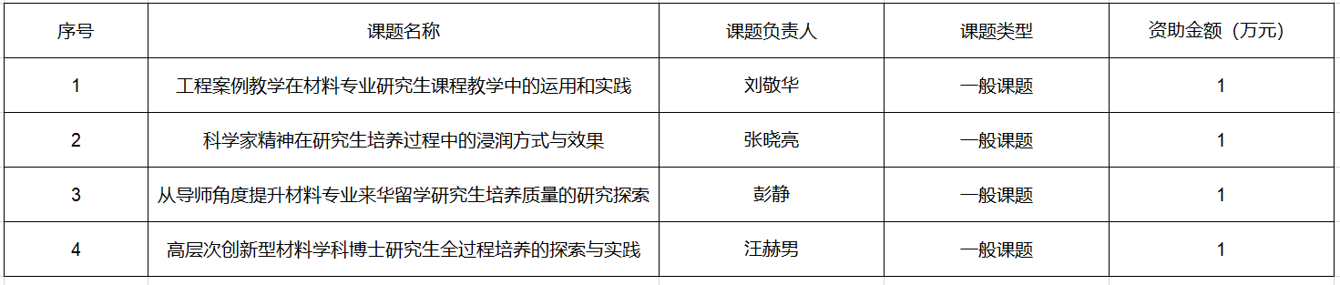 经教师申报、评审工作小组评审,现将材料科学与工程学院2024年度研究生教育与发展研究专项基金立项资助项目名单进行公示。